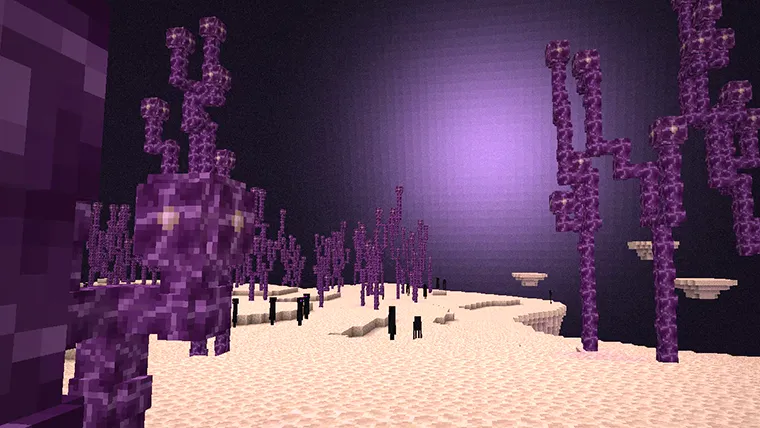 Destellos de luz iluminan ocasionalmente El End con brillo y sonido morado